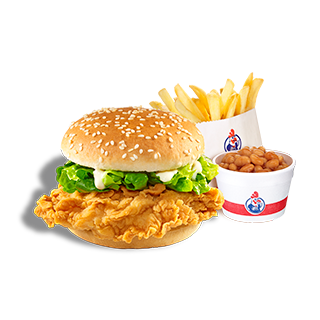 Chicken Breast Fillet Spicy Marinated, Crispy Coated & Cooked the Favorite Way with Lettuce & Cool Mayo, Served in a Sesame Seeded Bun.