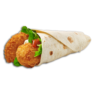 Crispy Chicken Fillet Strips, Lettuce & Cool Mayo in a Tortilla Wrap with Tangy Tomato Sauce or Spicy Salsa.