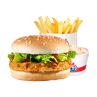 Mild Spicy Vege Burger, Lettuce & with Tangy Tomato or Spicy Salsa. Served in a Sesame Seeded Bun